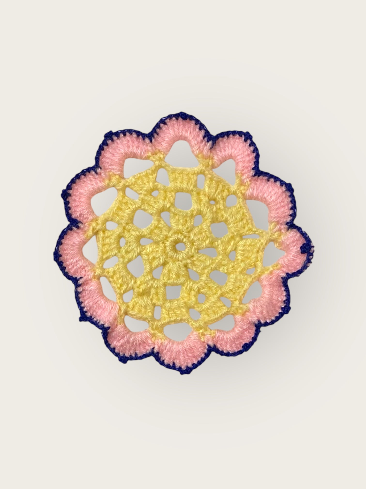 Add a touch of elegance to your space with this medium-sized circular crochet doily. Handmade from high-quality wool, it features a beautiful net design with a contrasting base color and border. Perfect for decorating tables, shelves, or dressers, this timeless piece brings warmth and charm to any setting.