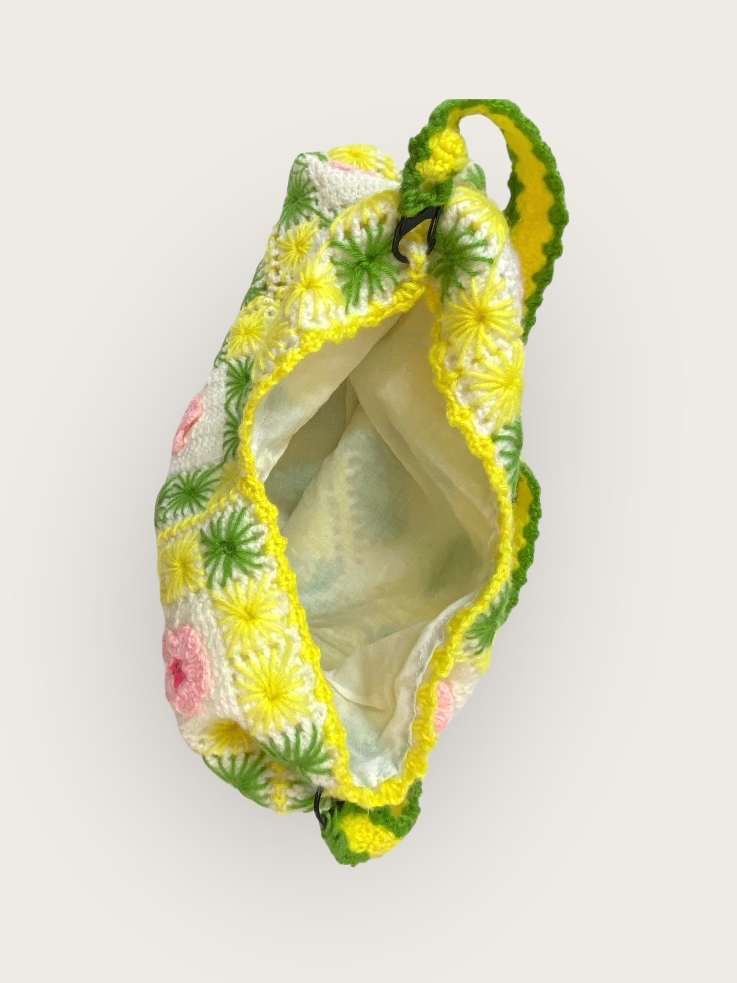 Carry your groceries in style with this medium-sized yellow and green floral crochet sling bag. Handcrafted with high-quality wool using intricate crochet techniques, this bag is lightweight, durable, and spacious enough for your shopping needs. A perfect blend of functionality and charm, it’s an eco-friendly choice that adds a vibrant touch to your everyday errands!